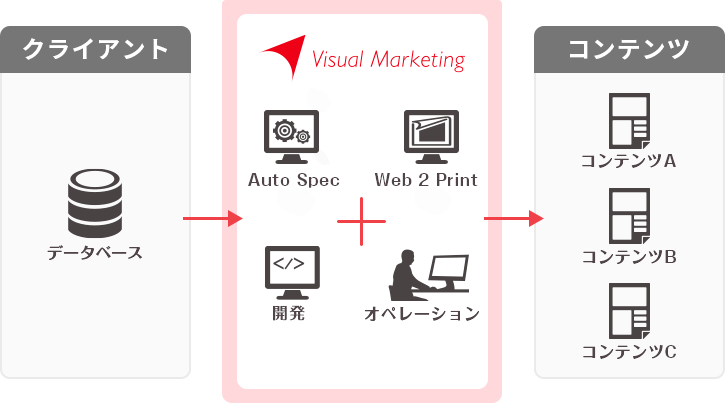 データベース管理からコンテンツ生成まで、あらゆるシステムを提供します。特に、デジタル印刷機にデータを効率よく流し込むための、上流工程に対するソリューションを強みとしております。また、各種システムの開・オペレーションのサービスを提供します。